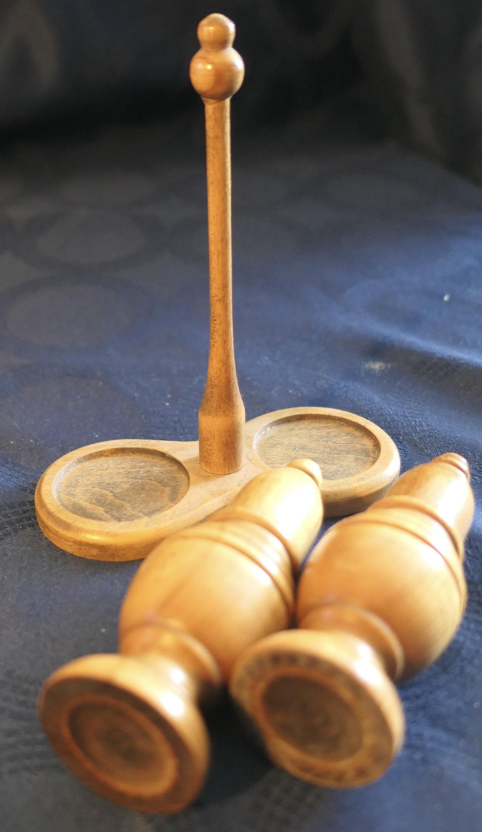 19th Century Beech Treen Salt & Pepper Shakers on Stand