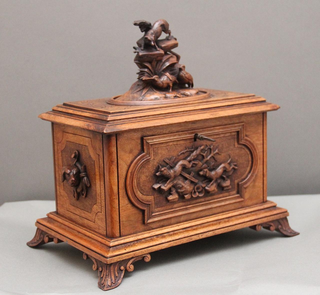 19th Century Black Forest Carved Wood Casket (1 of 9)