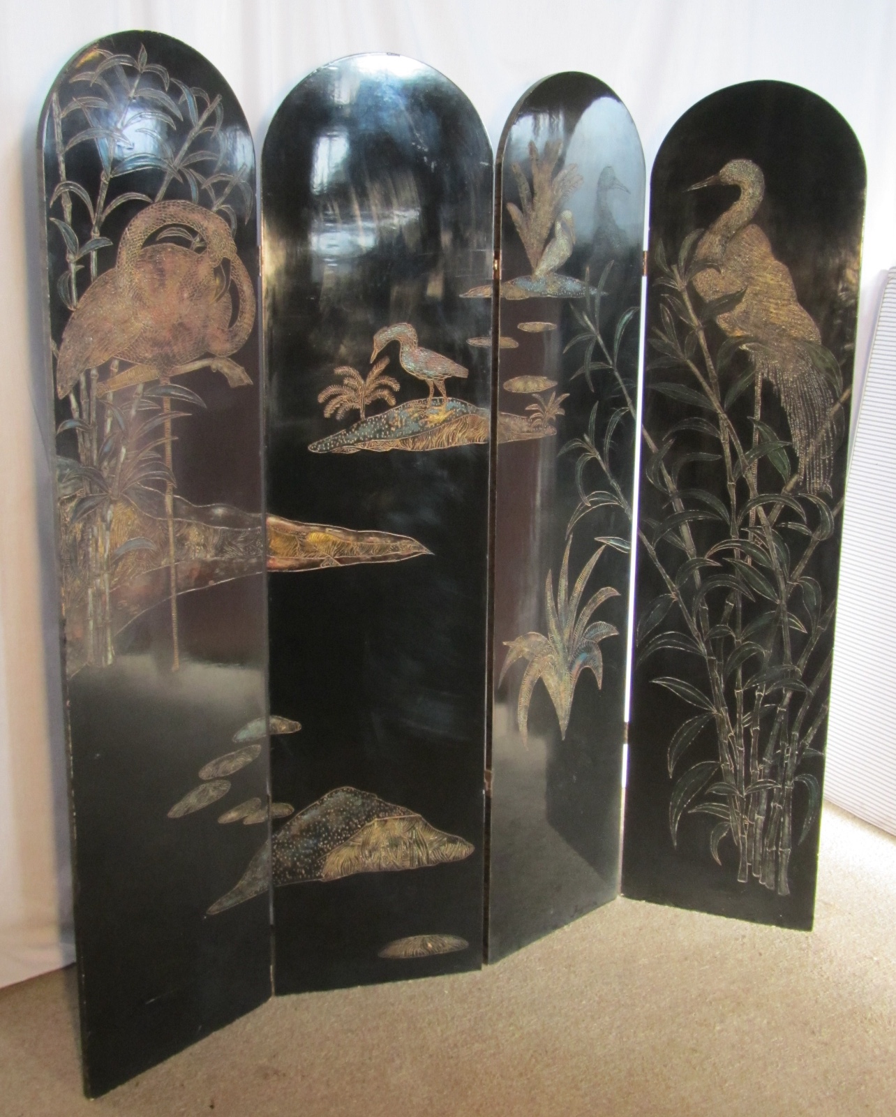 19th Century Black Lacquer Chinoiserie 4 Fold Japanese Screen