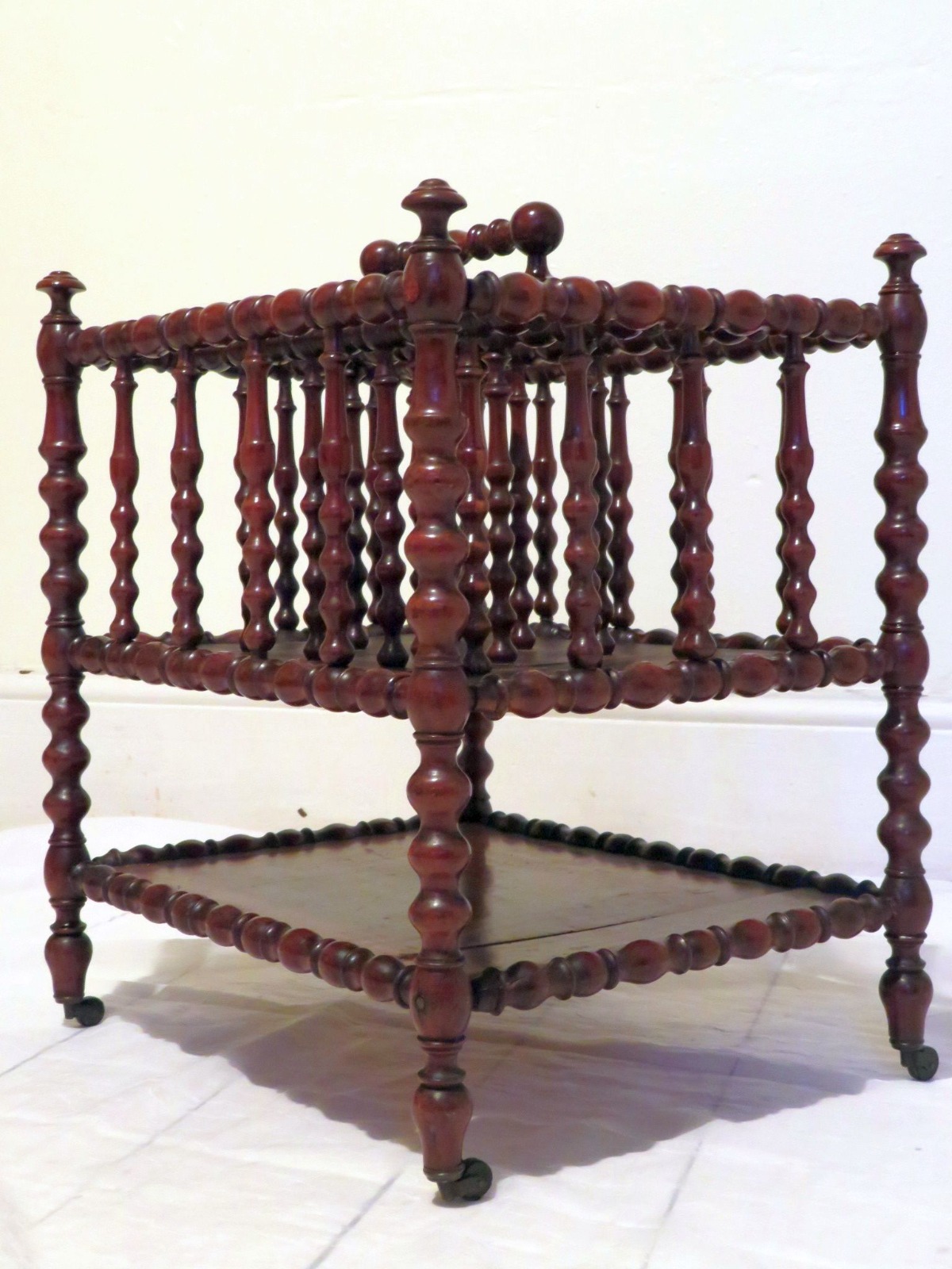 19th Century Bobbin Turned Fruitwood Canterbury