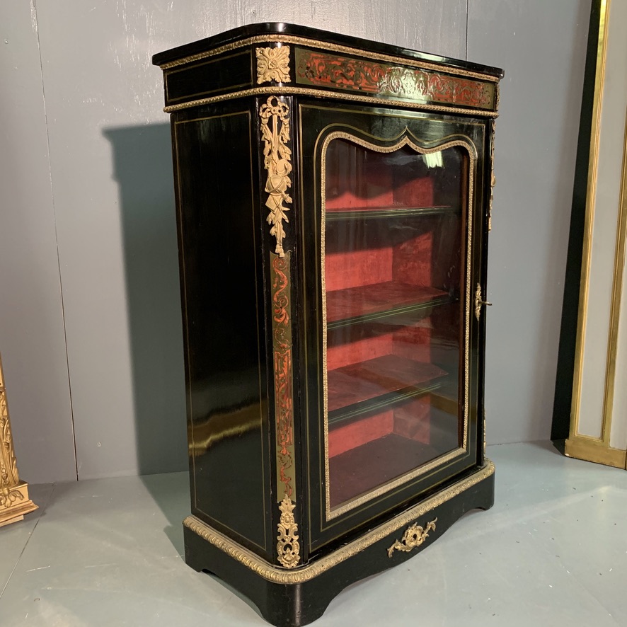 19th Century Boulle Work & Inlaid Black Lacquered Pier Cabinet (1 of 10)