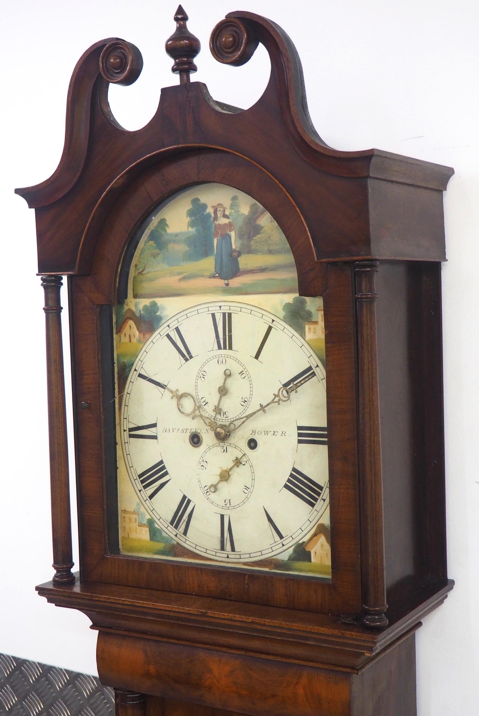 19th Century Bower 8 Day Longcase Clock Flame Mahogany Case Signed Painted Dial Grandfather Clock (1 of 13)