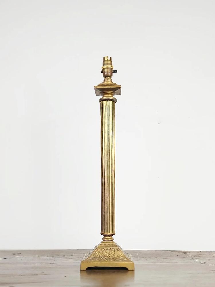 19th Century Brass Column Table Lamp