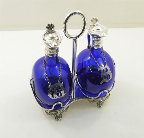 19th Century Bristol Blue Decanter Set with Stand (1 of 1)