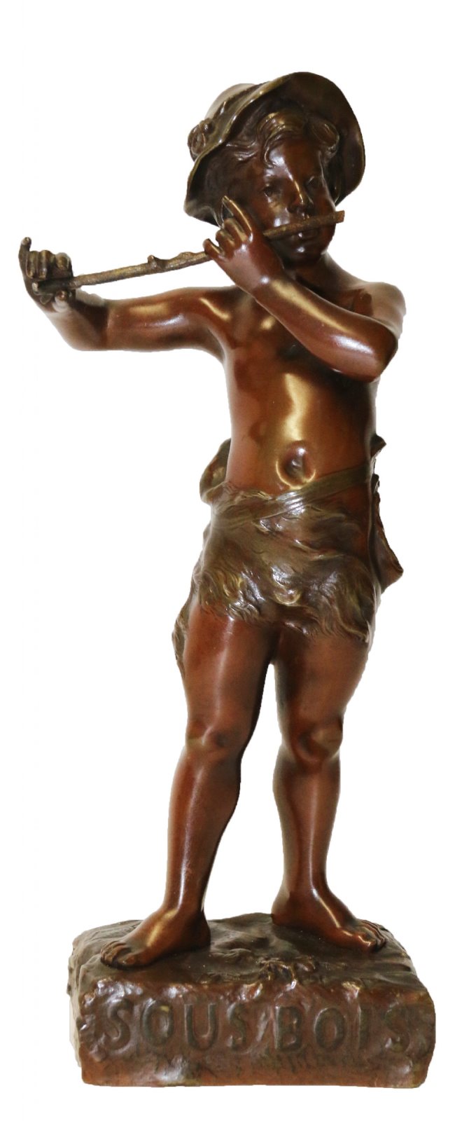 19th Century Bronze Figure of a Boy Playing a Flute by Marcel Debut (1 of 1)