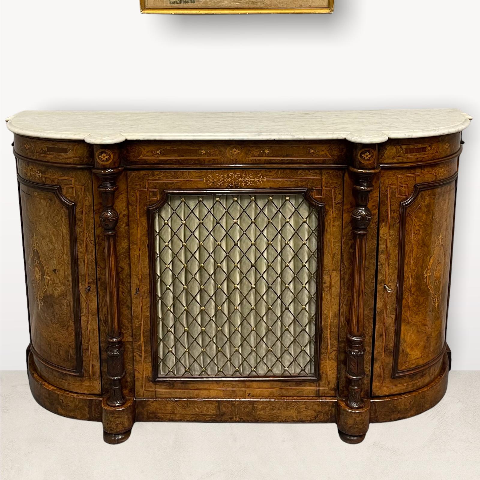 19th Century Burr Walnut & Marquetry Credenza
