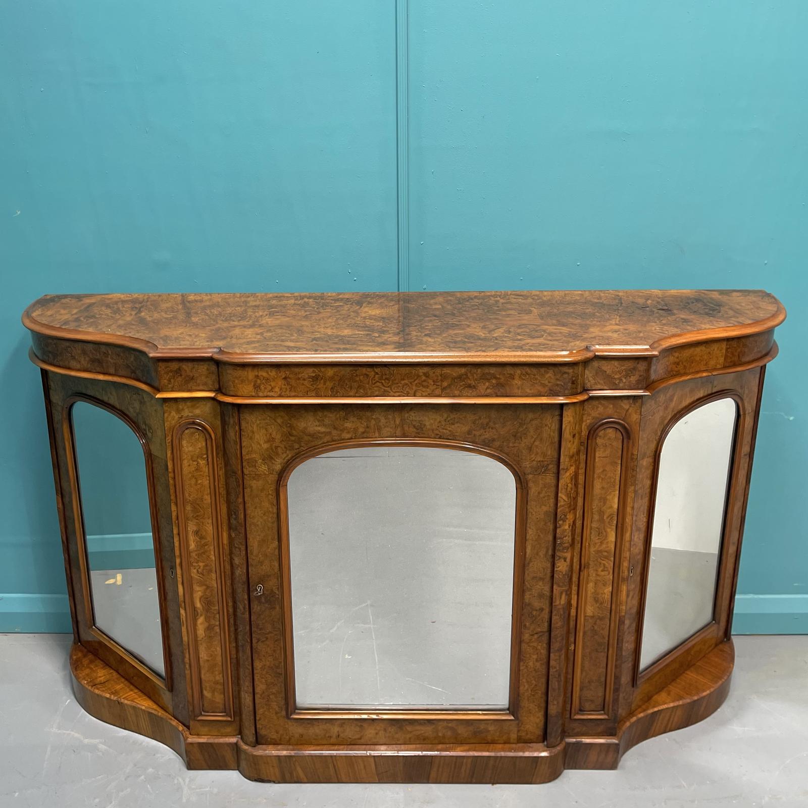 19th Century Burr Walnut Mirrored Credenza (1 of 9)
