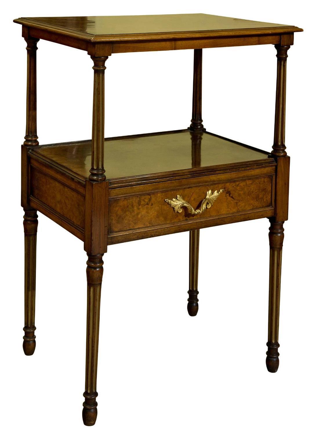 19th Century Burr Walnut Two Tier Side Table, Single Drawer