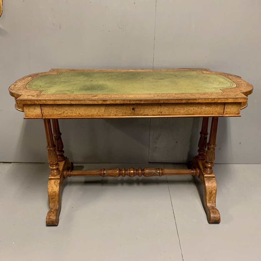 19th Century Burr Walnut Writing Table with Leather Top (1 of 13)