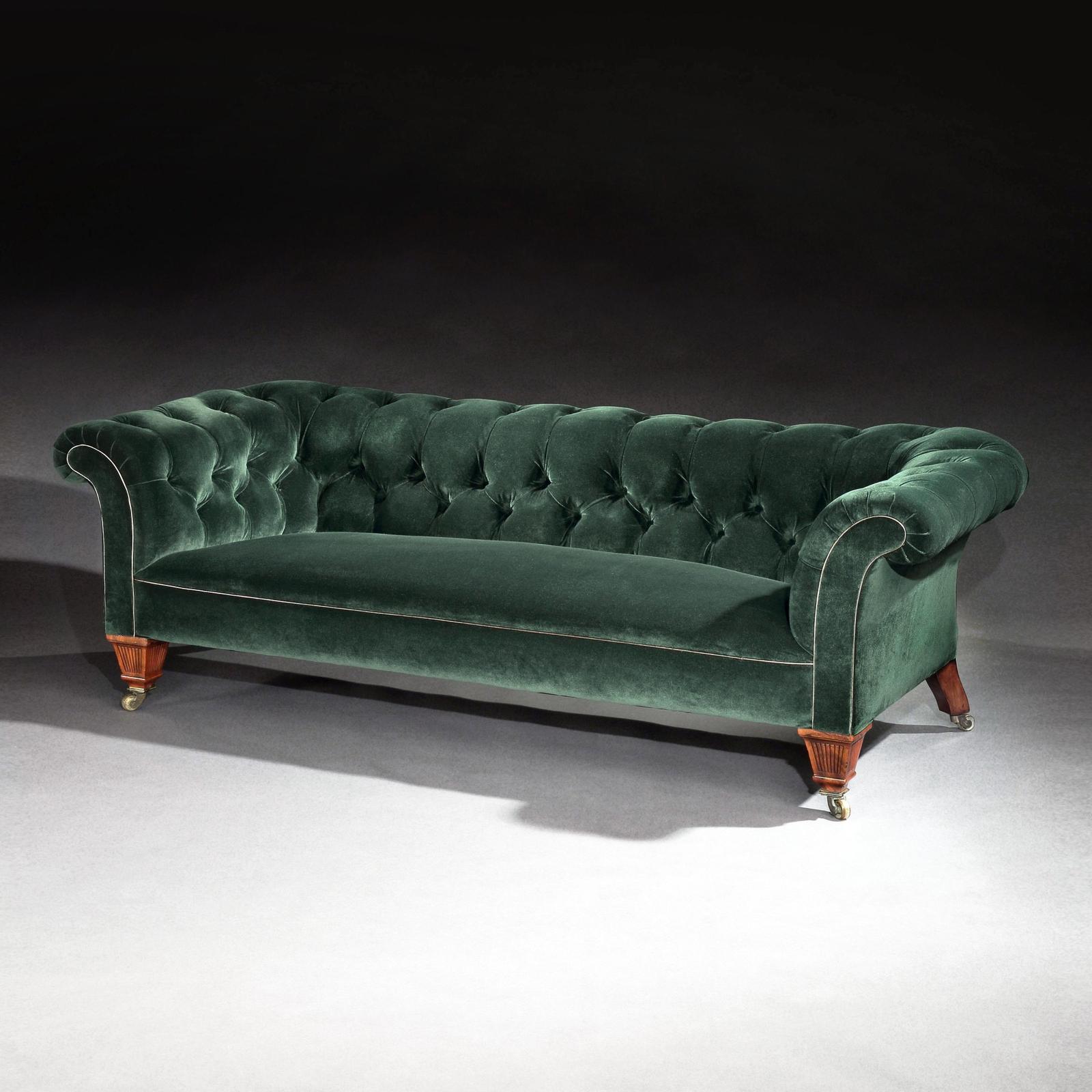 19th Century 'C Hindley & Sons', London Victorian Chesterfield Sofa Upholstered in a Green Velvet