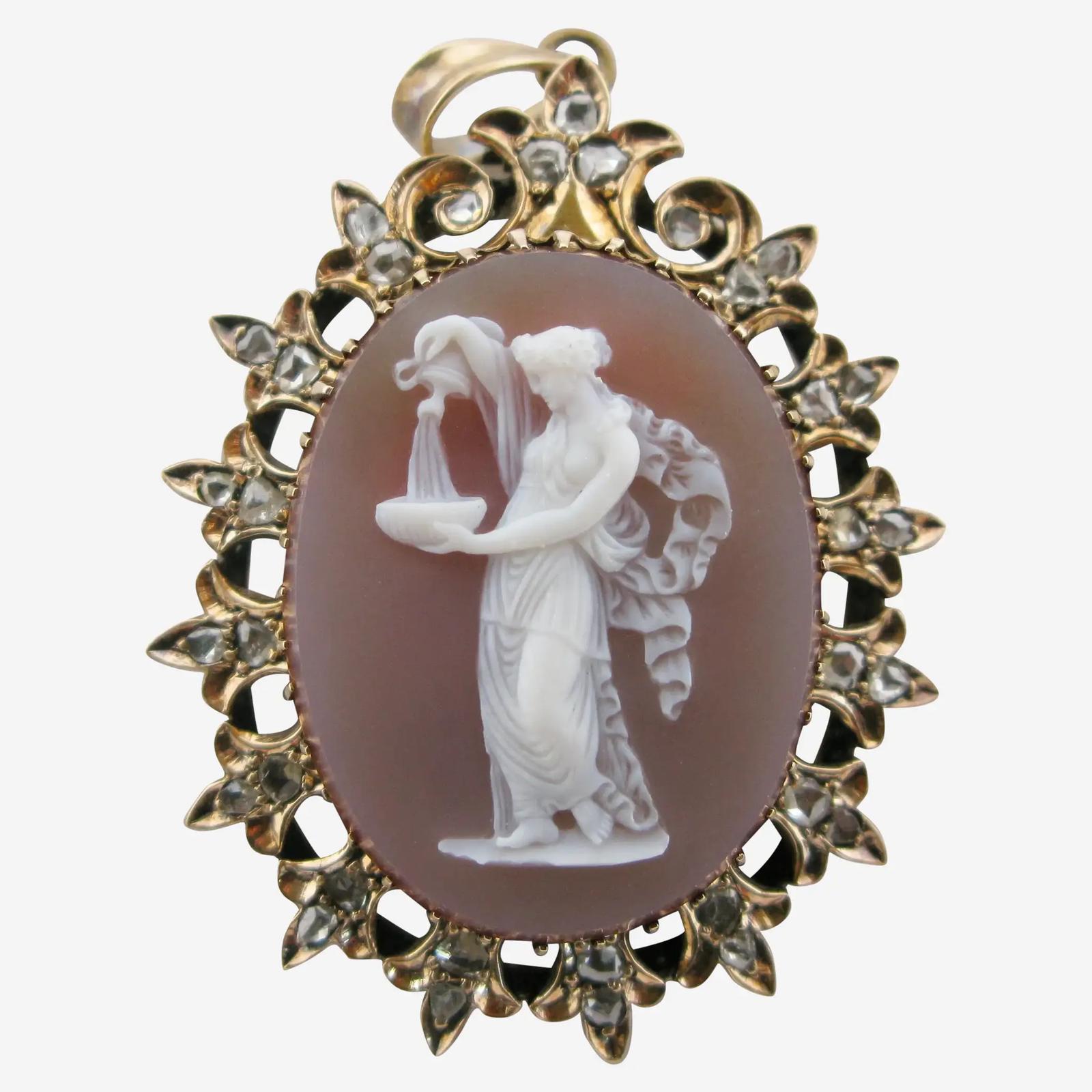 19th Century Carnelian Hardstone Cameo Pendant 18k Gold Diamonds