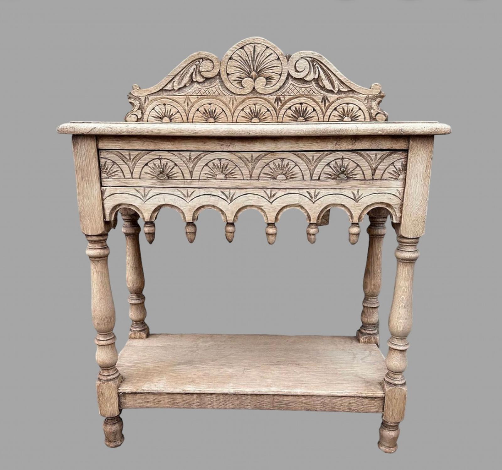 19th Century Carved Bleached Oak Hall Table / Side Table