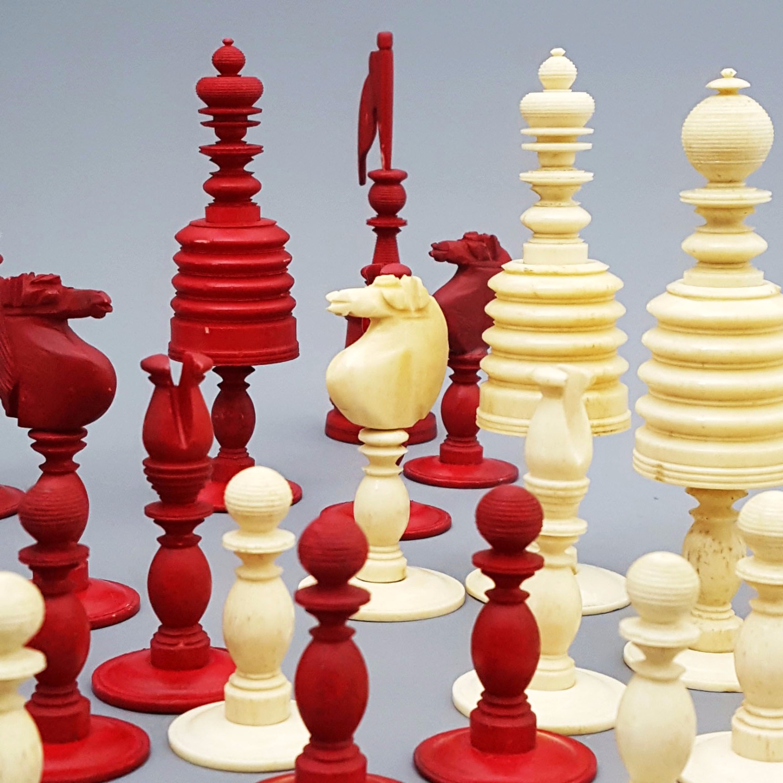 19th Century Carved Bone Barleycorn Chess Set with Inlaid Rosewood Box (1 of 10)