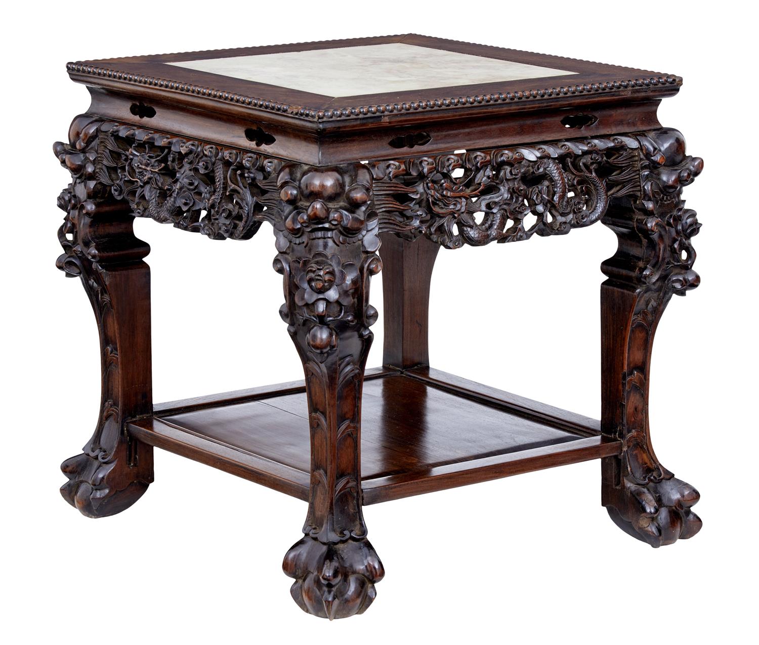 19th Century Carved Chinese Hardwood & Marble Top Table (1 of 8)