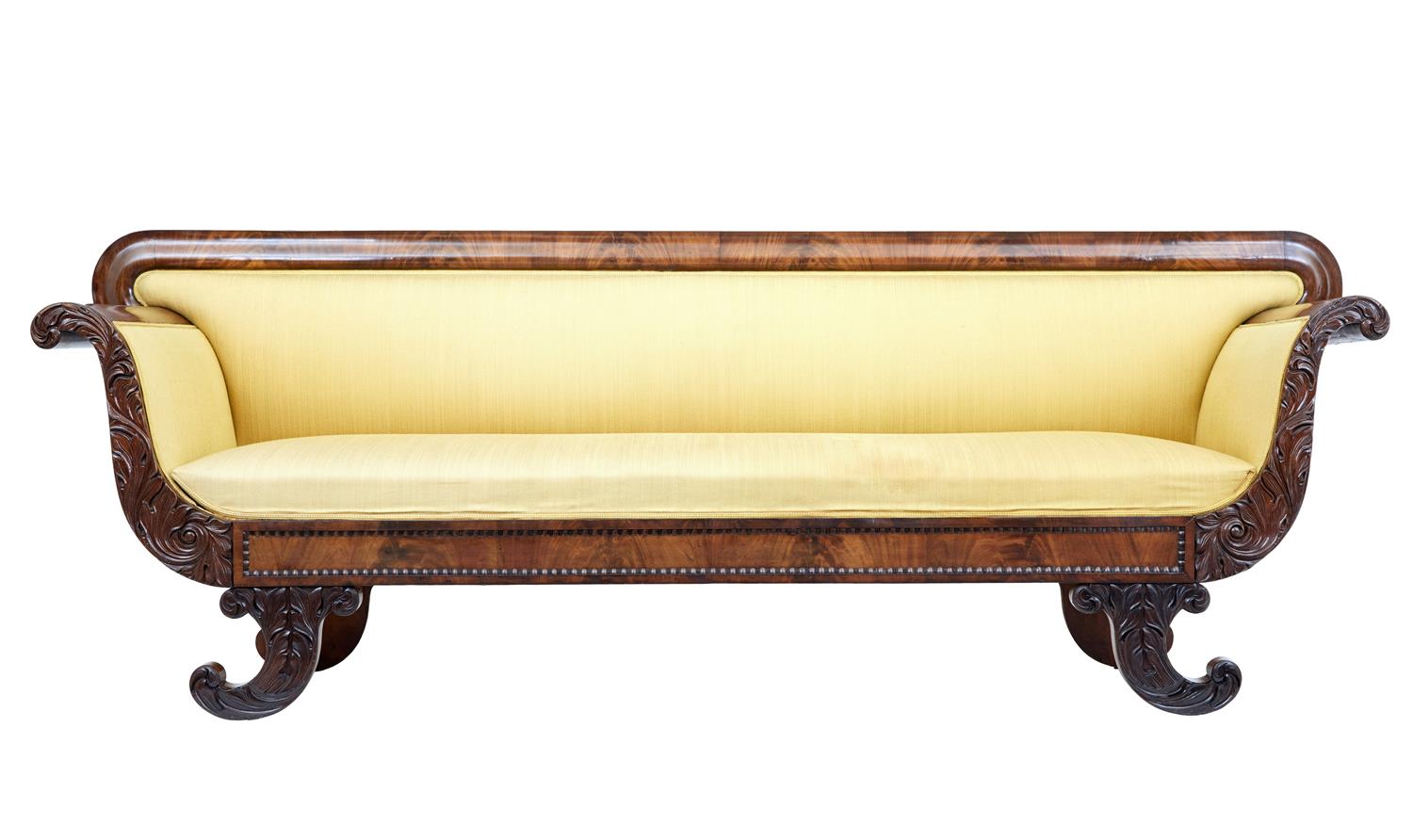 19th Century Carved Flame Mahogany Swedish Sofa (1 of 1)