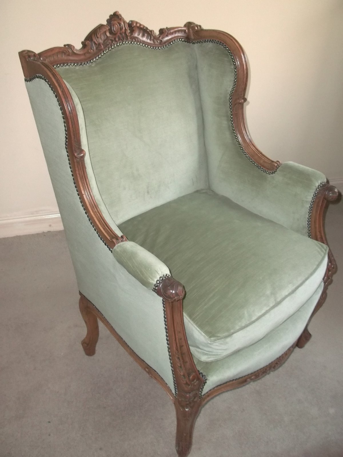 19th Century Carved French Walnut Wing Back Armchair