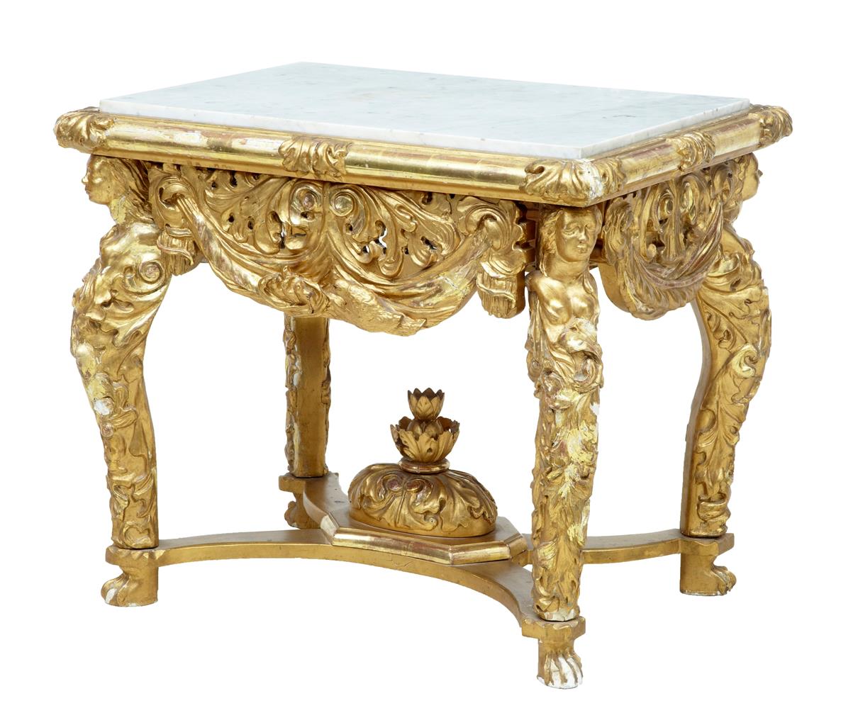 19th Century Carved Gilt Marble Top Centre Table (1 of 9)