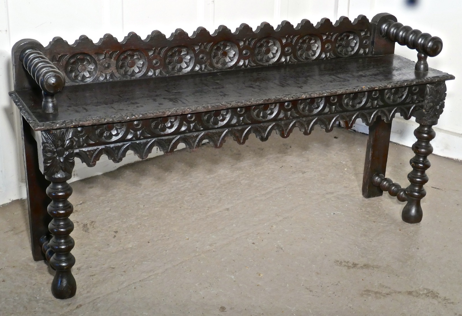 19th Century Carved Gothic Oak Window Seat or Hall Bench