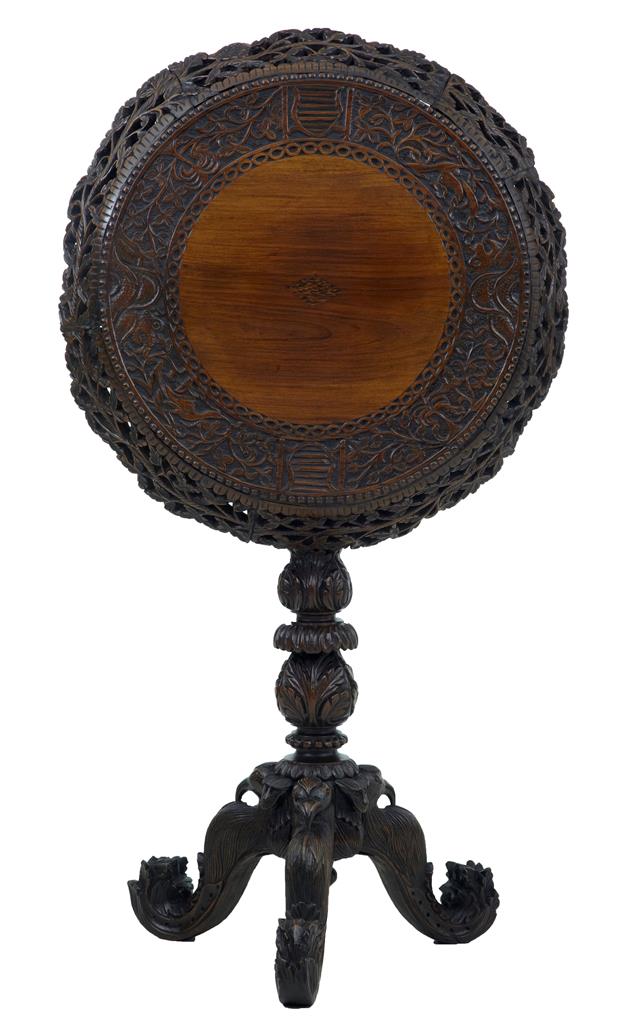 19th Century Carved Hardwood Ceylonese Flip Top Tripod Table