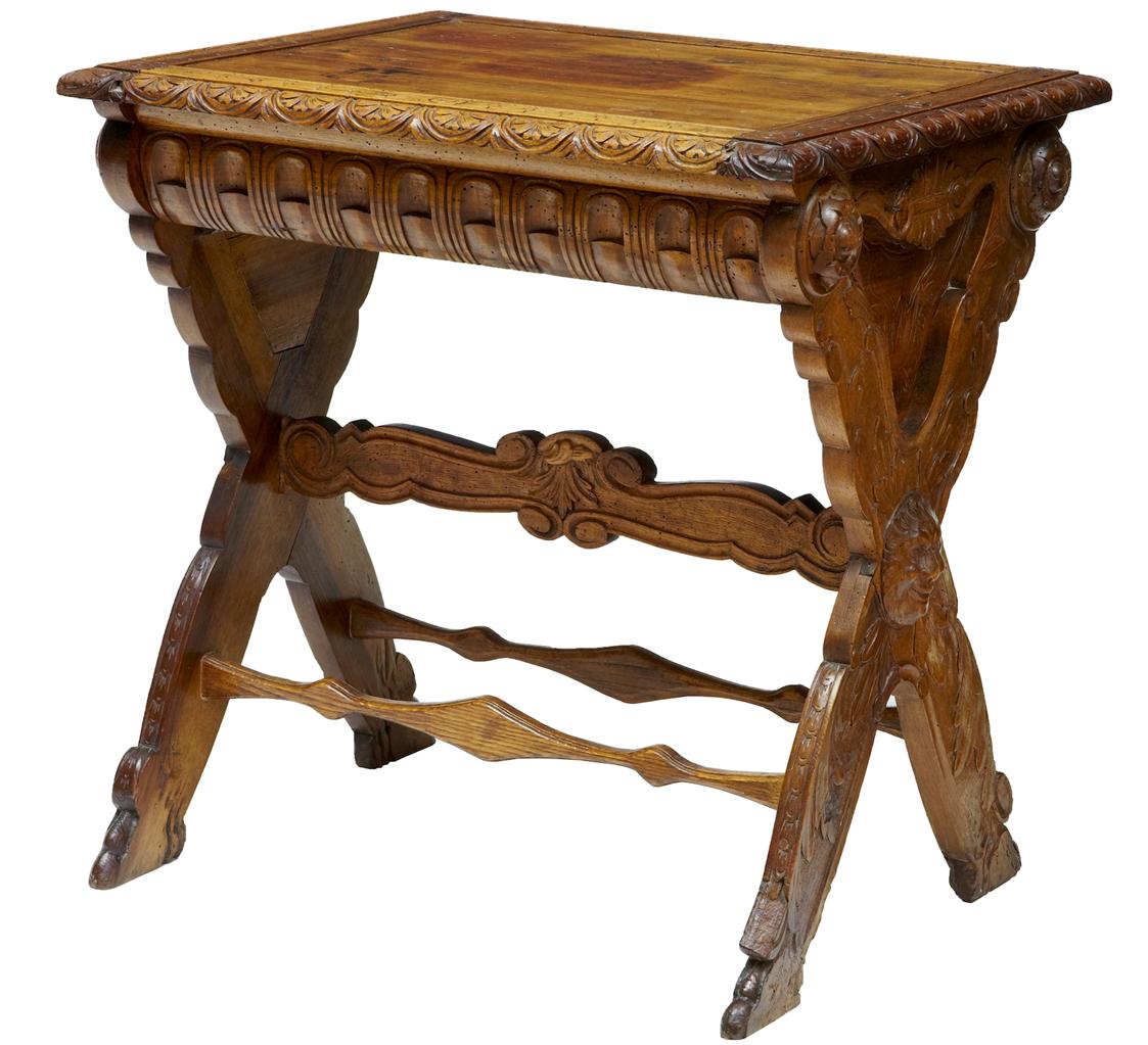 19th Century Carved Italian Walnut & Pine Occasional Table