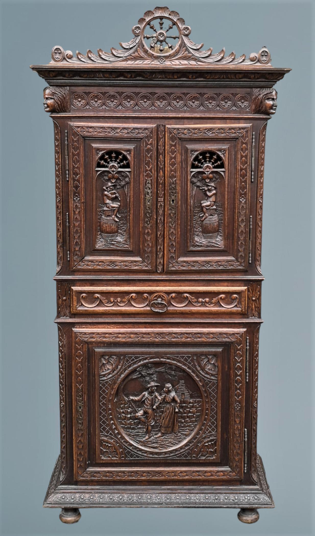 19th Century Carved Oak Continental Cabinet (1 of 20)