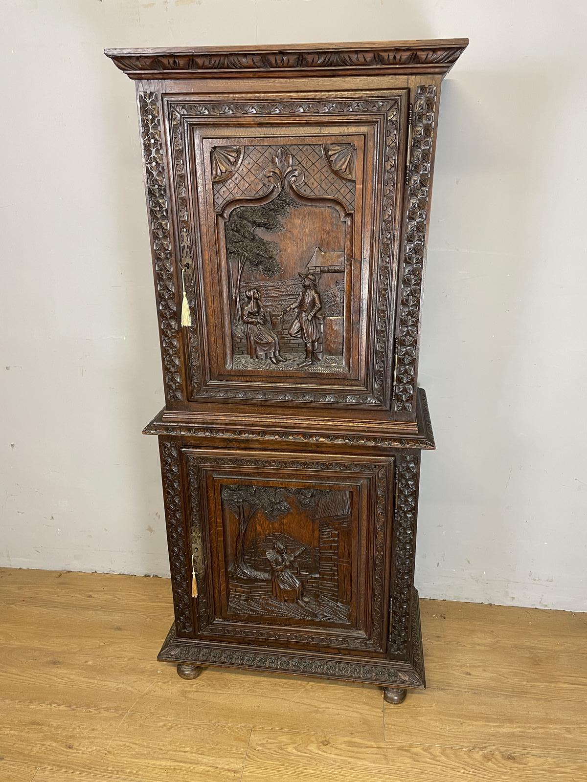 19th Century Carved Oak Continental Two Door Cupboard