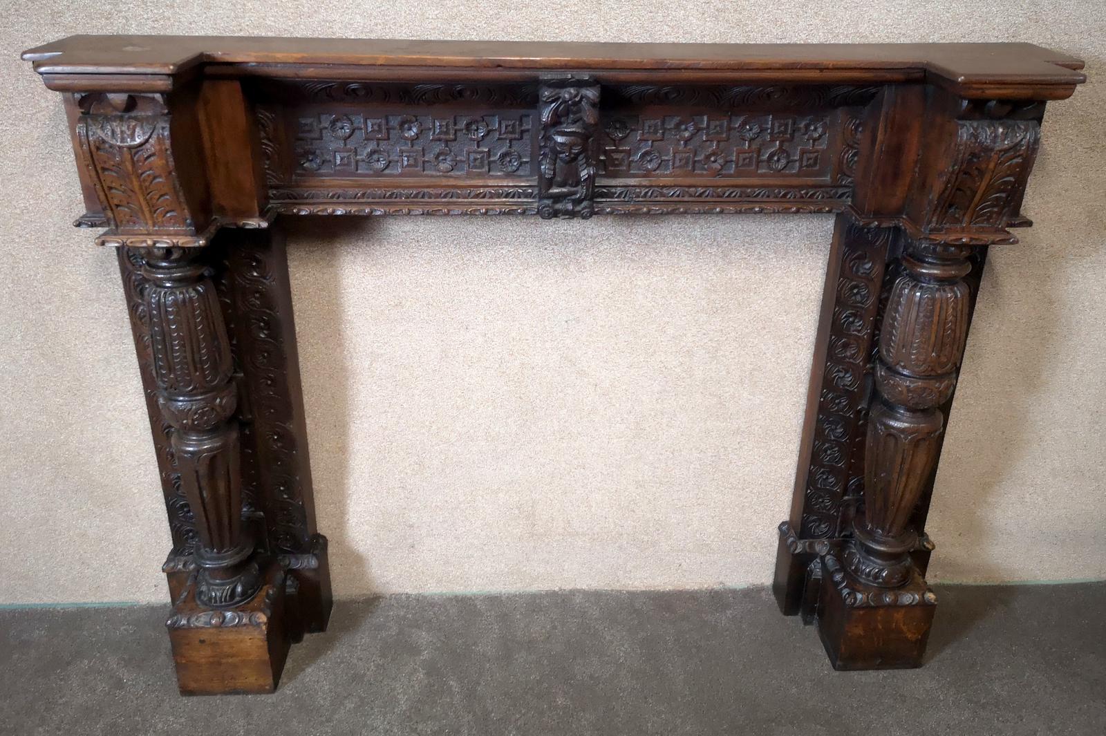 19th Century Carved Oak Fire Surround / Chimney Piece (1 of 12)