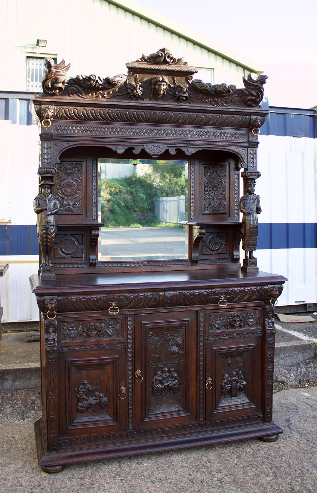 19th Century Carved Oak Mirror Back Sideboard (1 of 8)