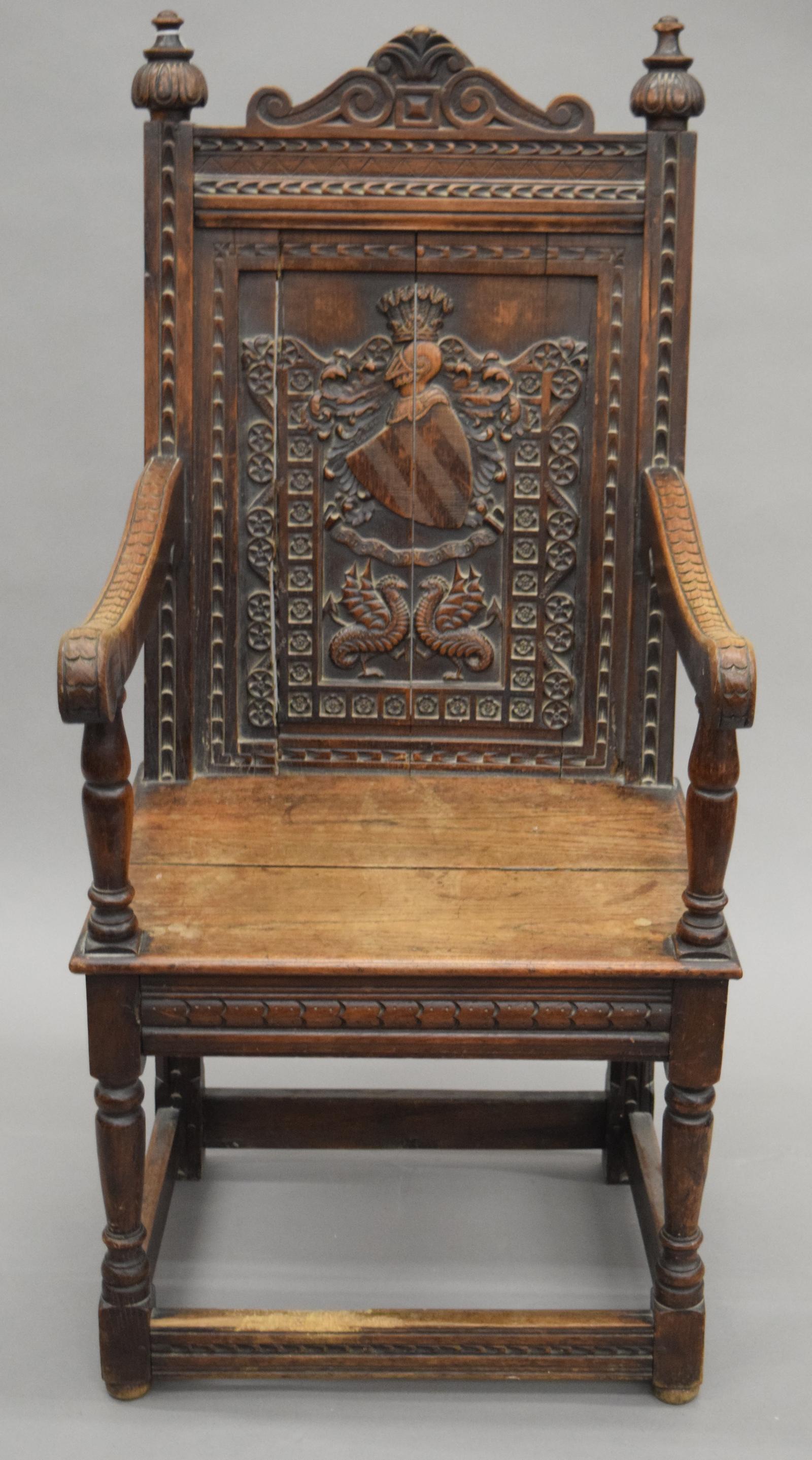 19th Century Carved Oak Open Armchair