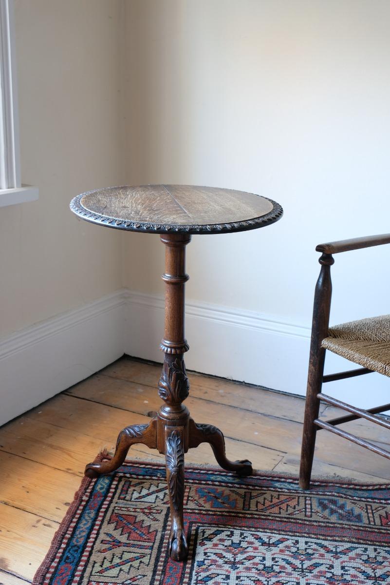 19th Century Carved Oak Tripod Wine Table with Claw Feet