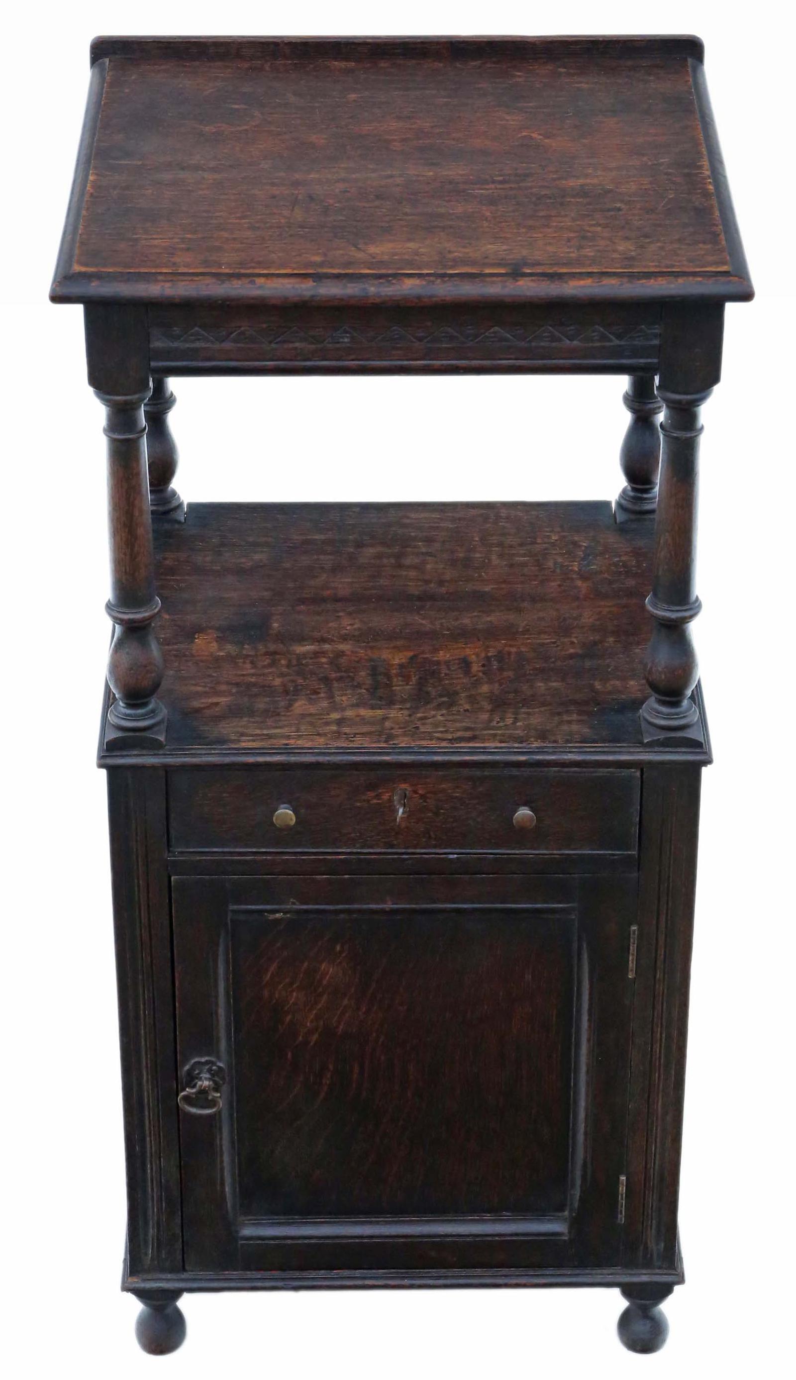 19th Century Carved Oak Washstand Bedside Table Nightstand (1 of 9)