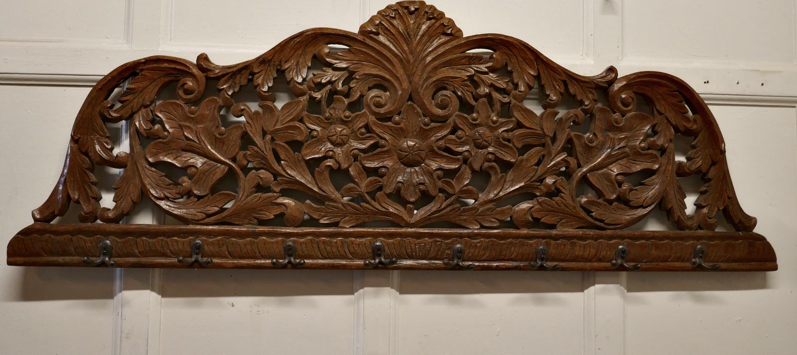 19th Century Carved Wall Hanging Coat Rack