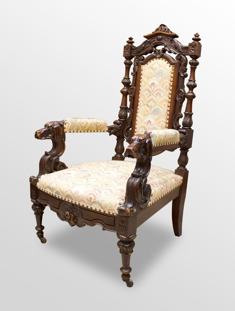 19th Century Carved Walnut Armchair Stamped C.W Pat