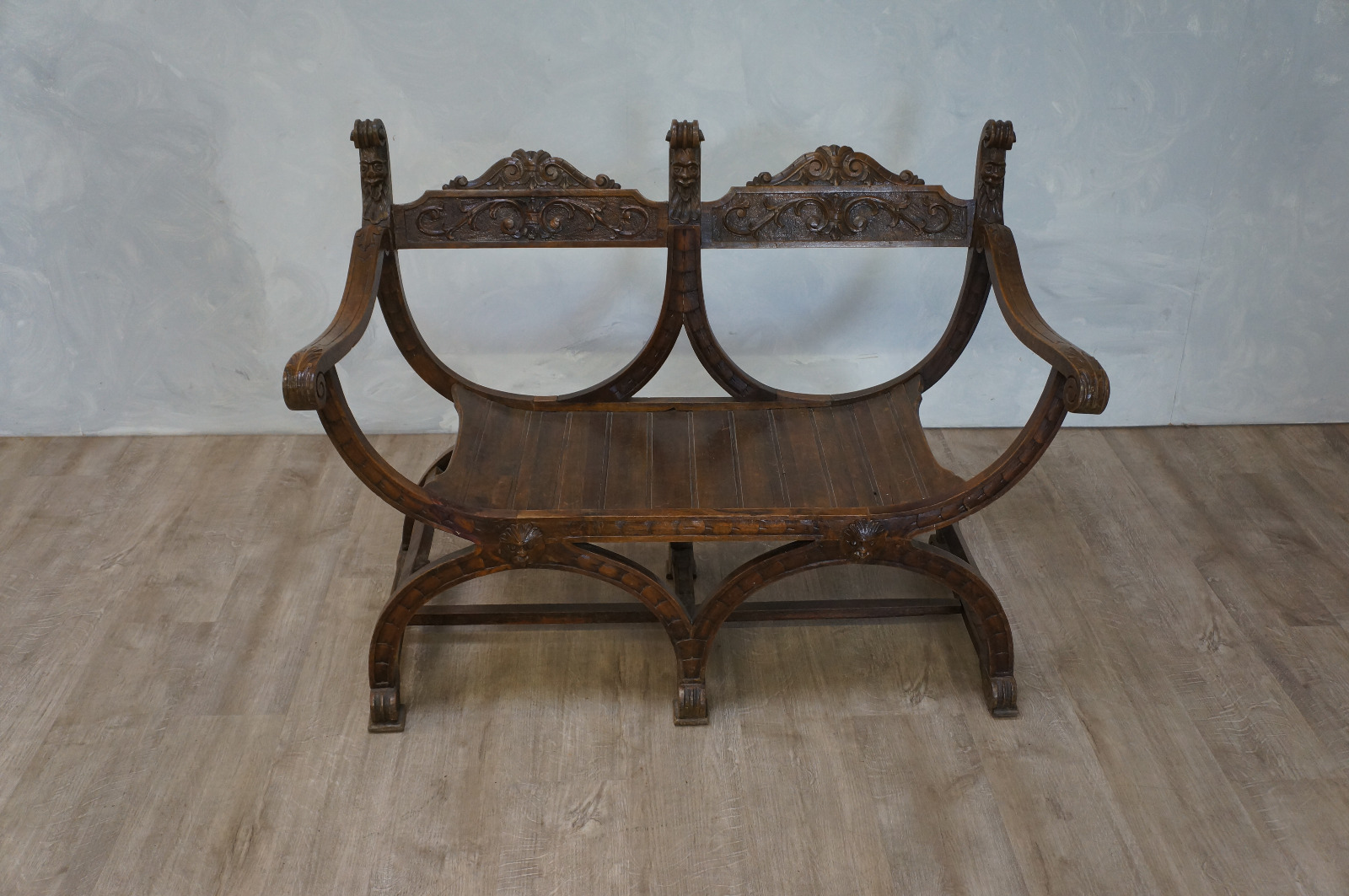 19th Century Carved Walnut Bench