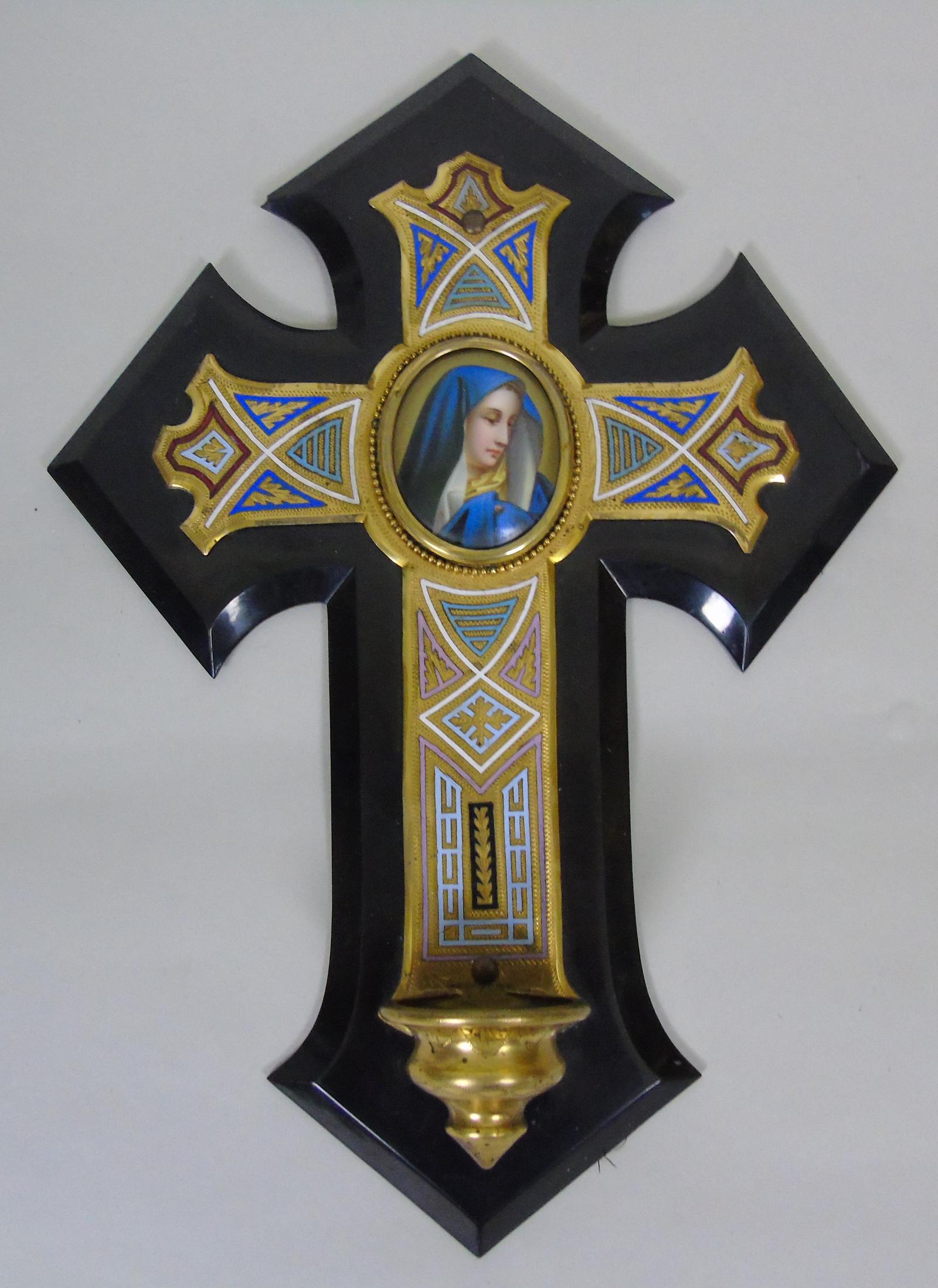 19th Century Champleve Enamel and Bronze Crucifix Holy Water Stoop (1 of 6)