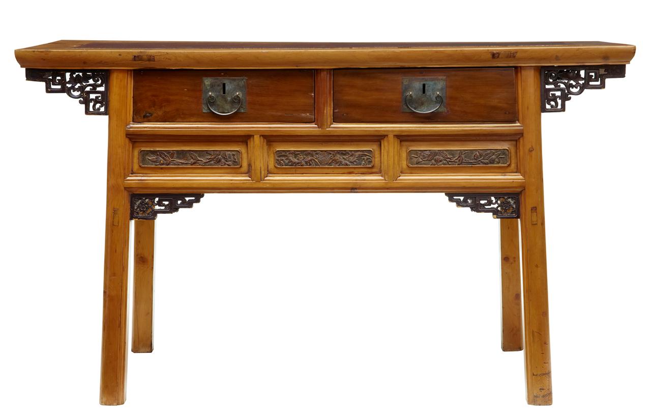 19th Century Chinese Carved Cypress Wood Altar Table Sideboard