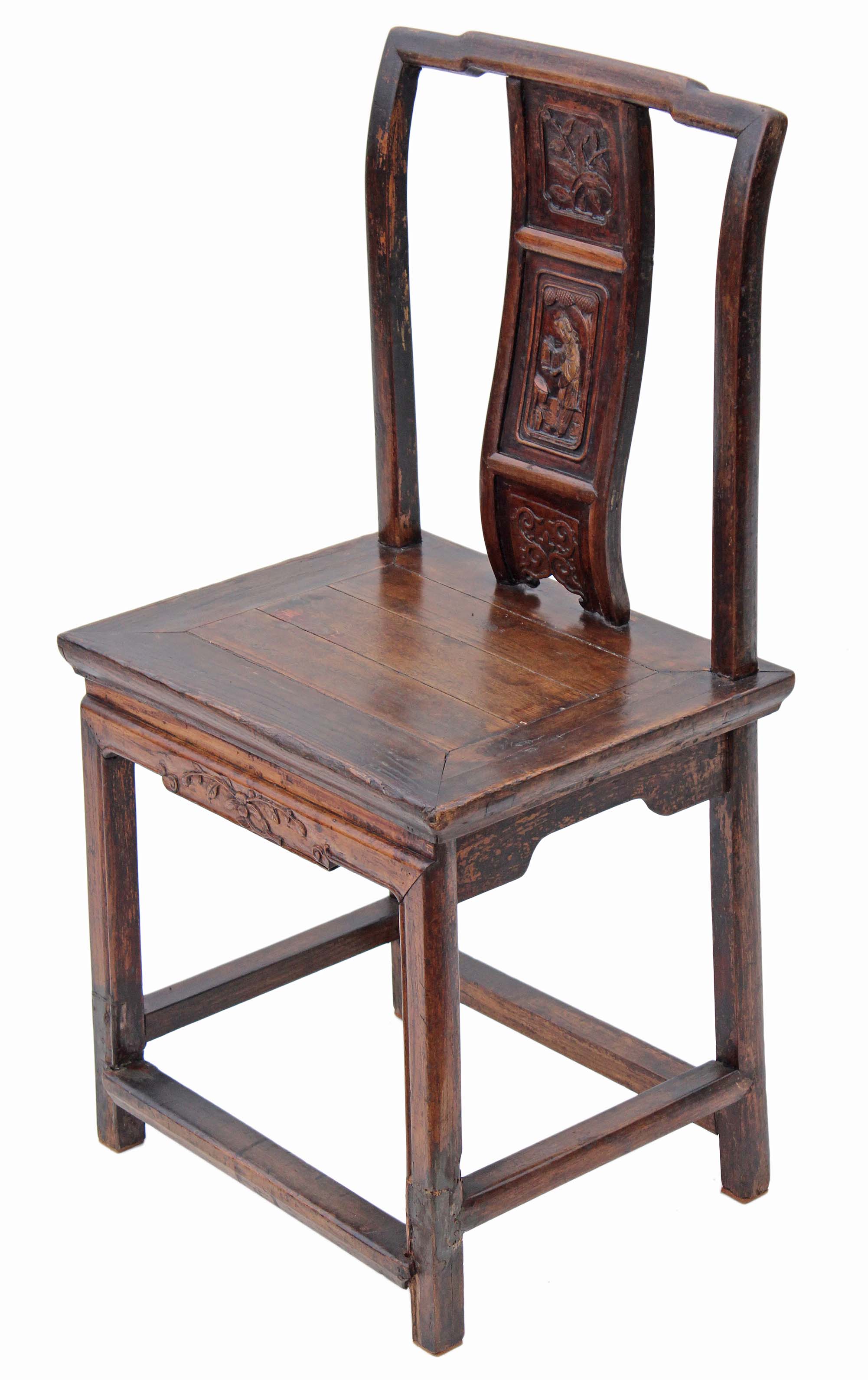 19th Century Chinese Carved Elm Hall Chair / Side Chair / Occasional Chair / Bedroom Chair (1 of 1)