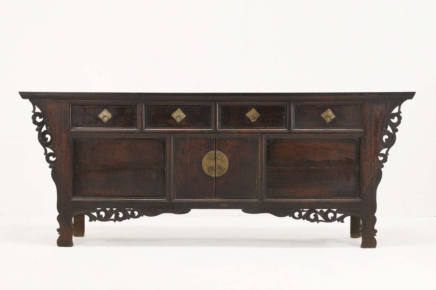 19th Century Chinese Elm Sideboard with Carved Decoration