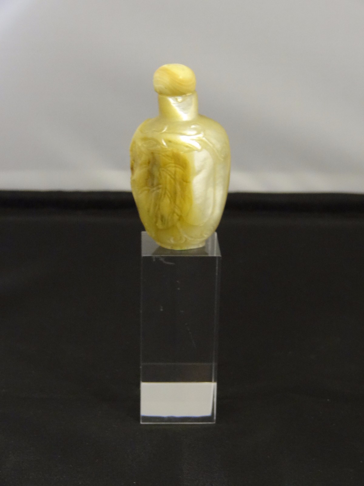 19th Century Chinese Hardstone & Mother of Pearl Snuff Bottle, Carved Leaf Scrolls
