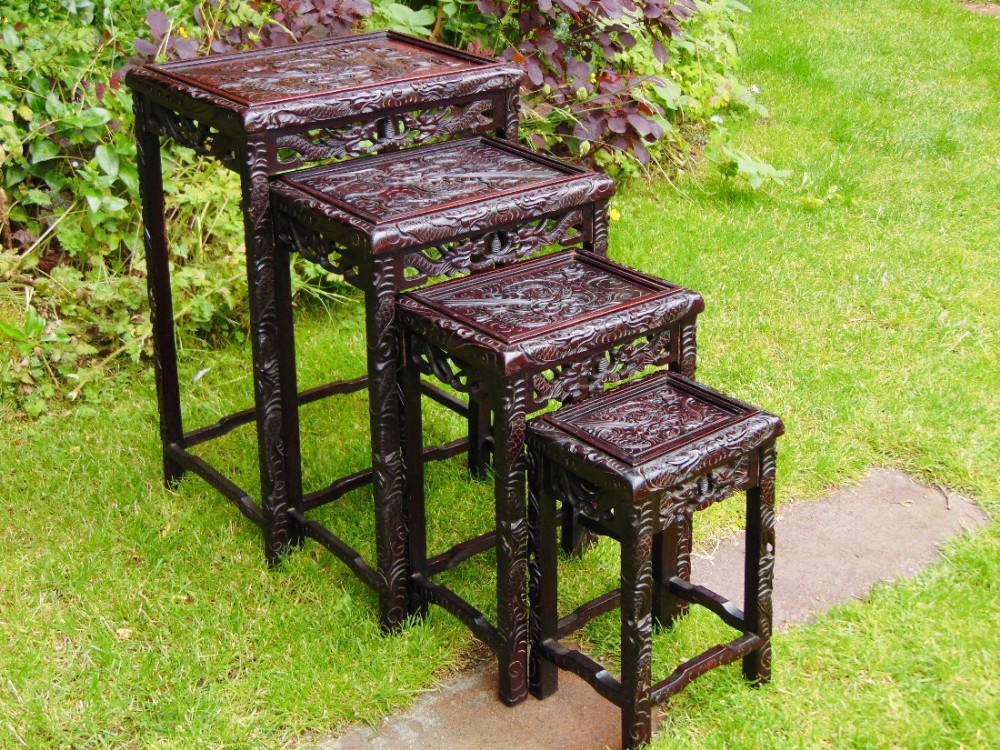 19th Century Chinese Hardwood Dragon Carved Quartetto Nest of Tables (1 of 1)