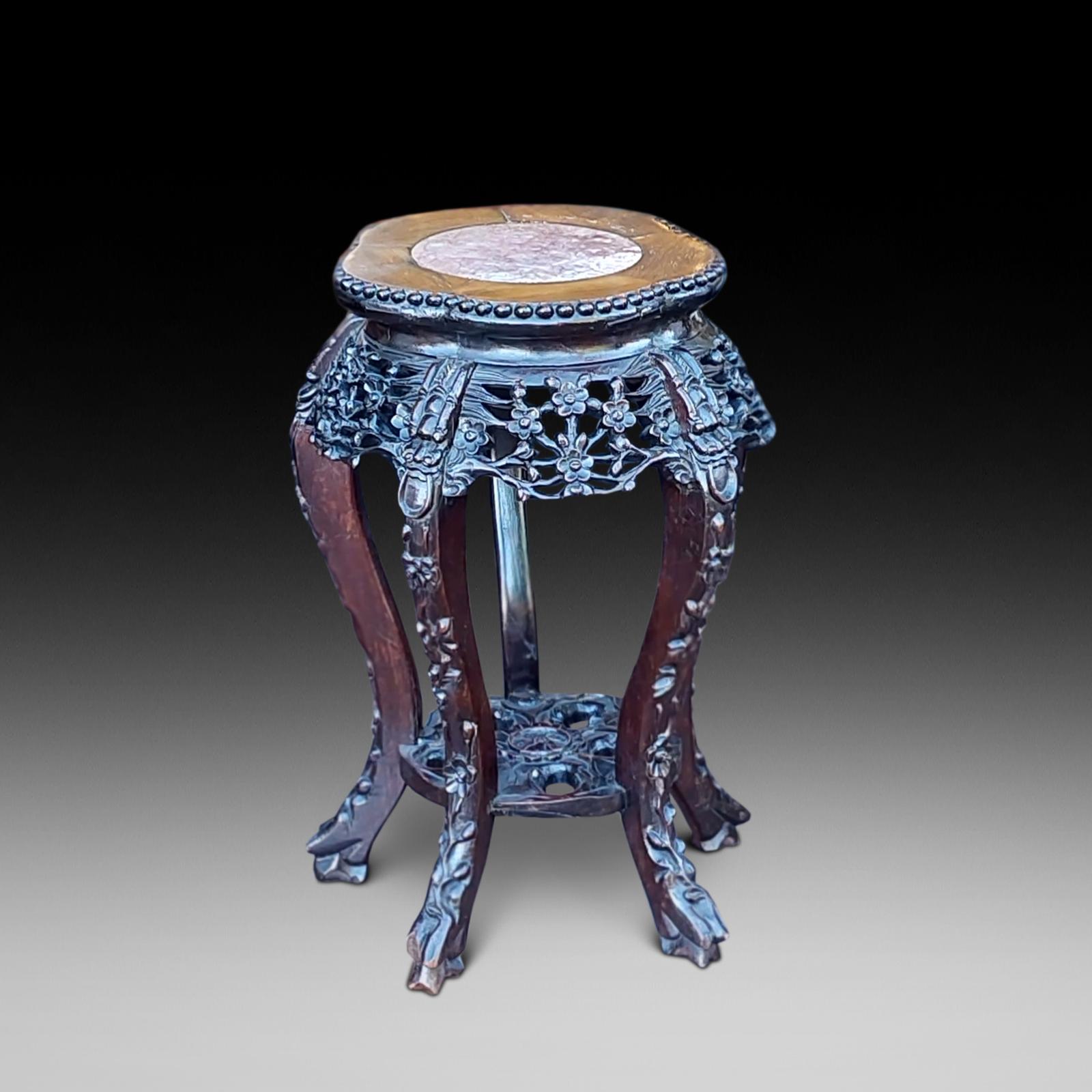 19th Century Chinese Hardwood & Pink Marble Urn Stand (1 of 6)