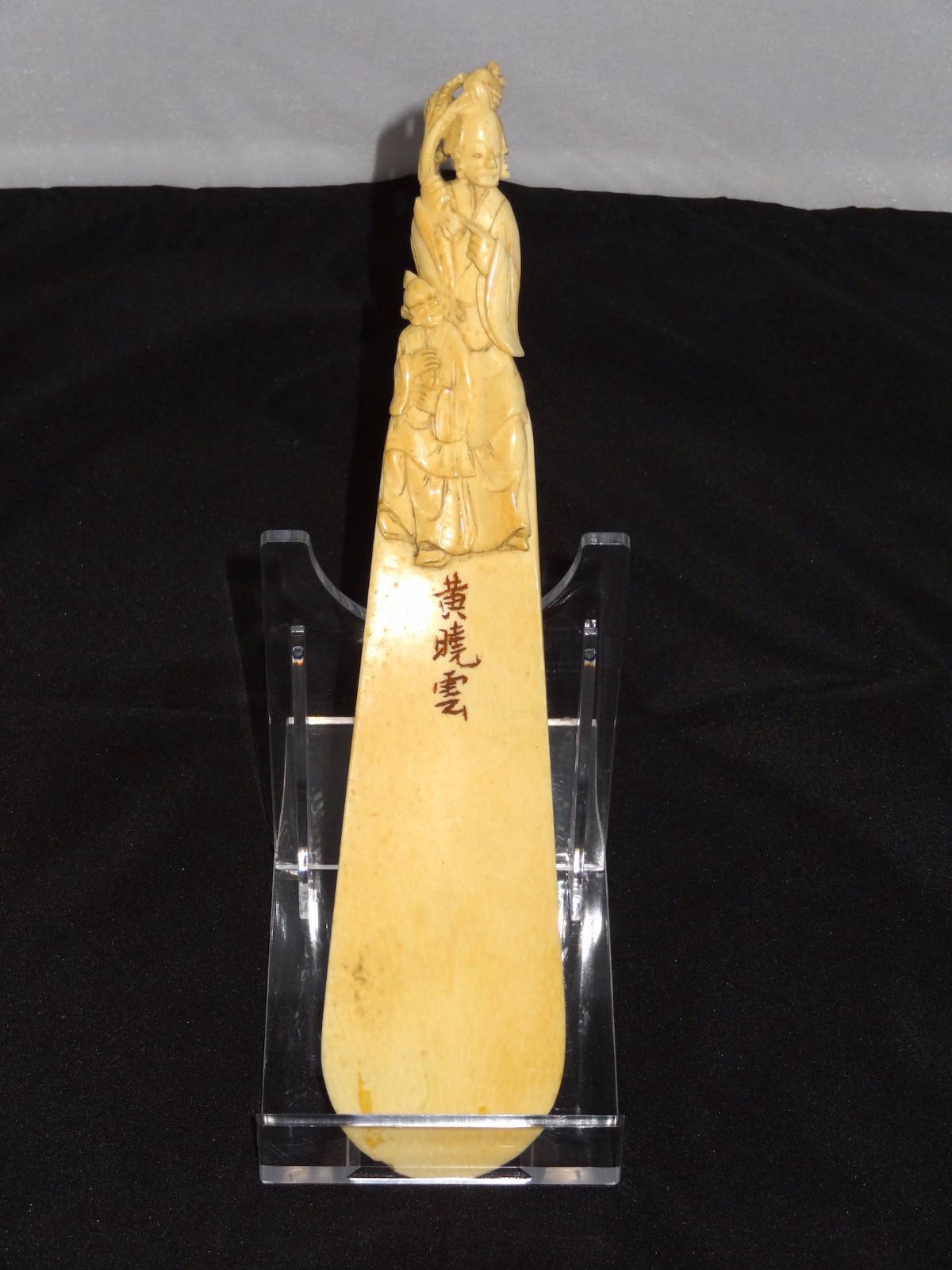 19th Century Chinese Ivory Shoe Horn, Carved Handle, Chinese Export Made