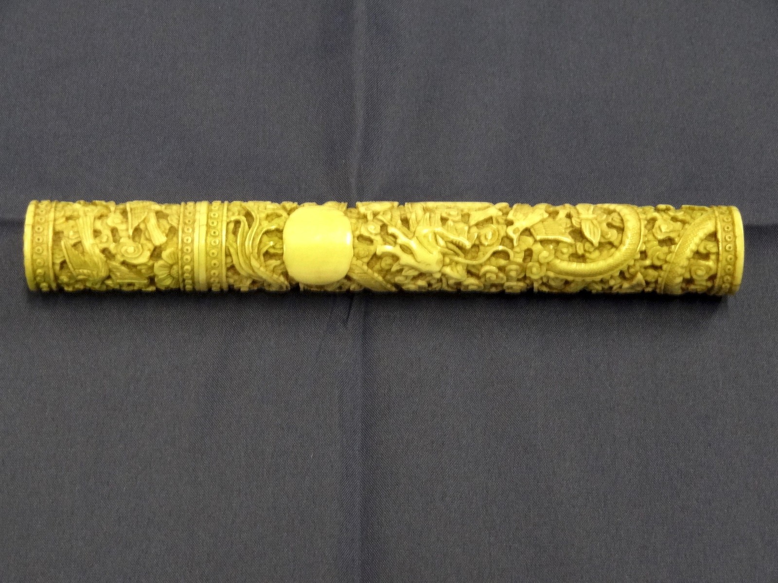 19th Century Chinese Ivory Stick Etui, Deep Carved, Empty Monogram