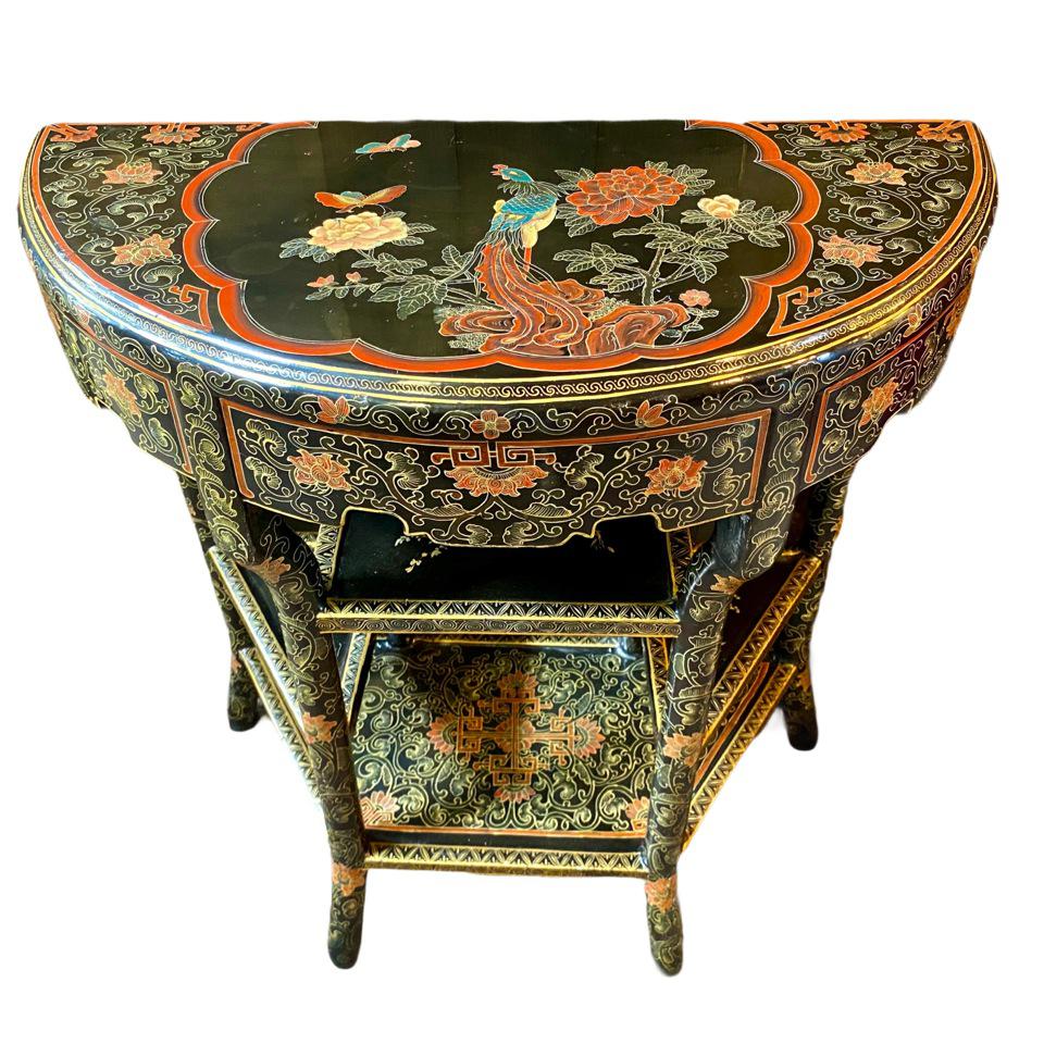 19th Century Chinese Lacquer Demi Lune Console Table