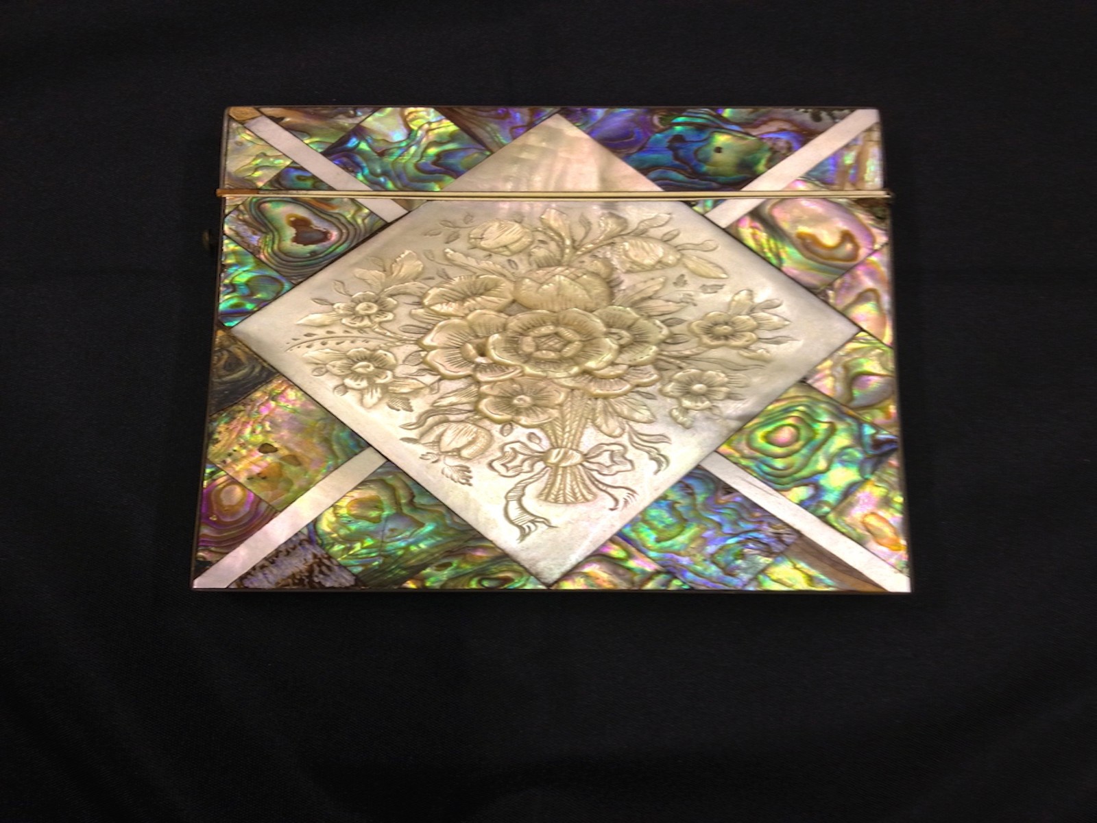 19th Century Chinese Mother of Pearl Card Case, High Relief Decoration