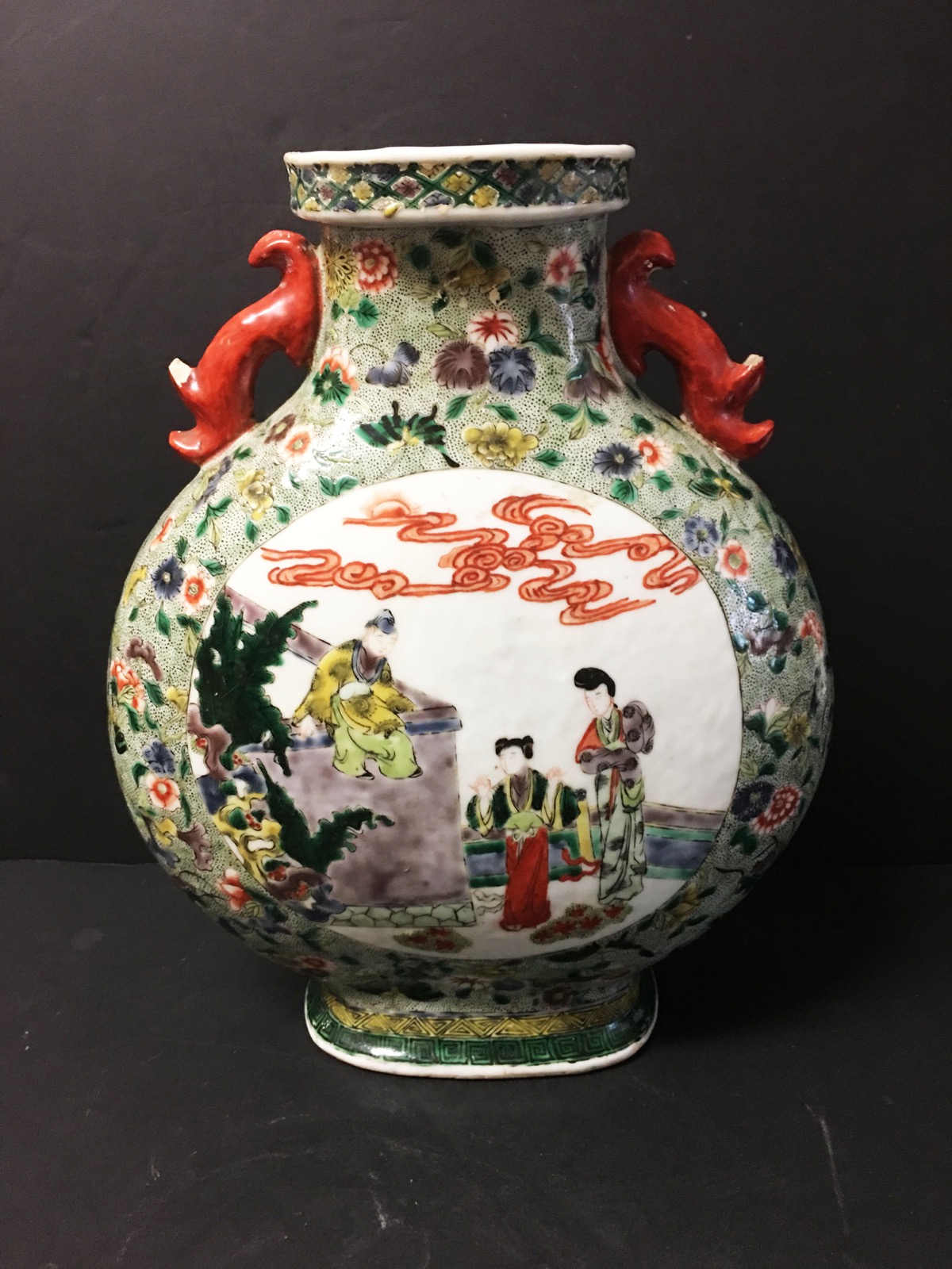 19th Century Chinese Porcelain Famille Vert Moon Flask