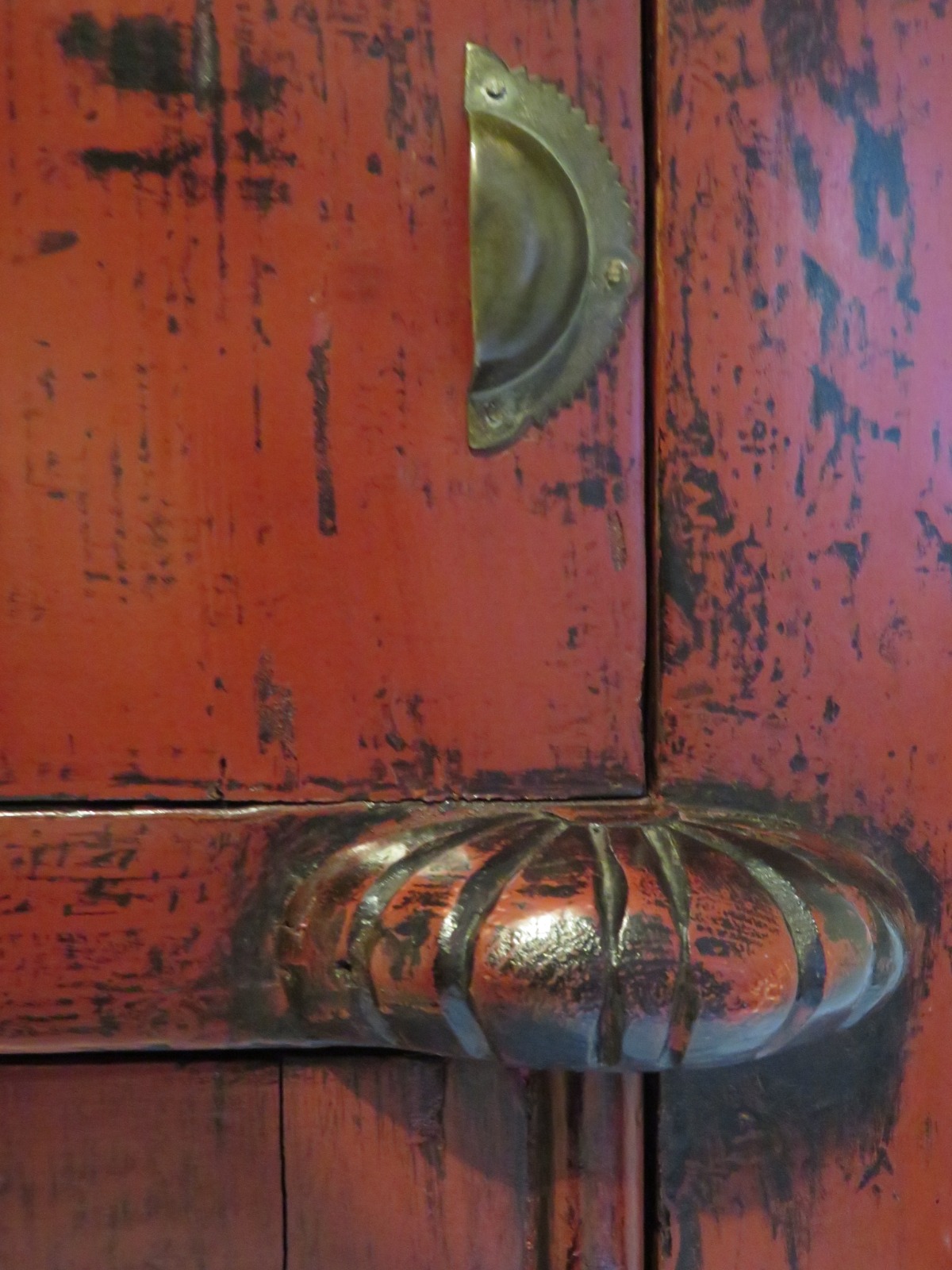 19th Century Chinese Scarlet Lacquered Tapered Cabinet