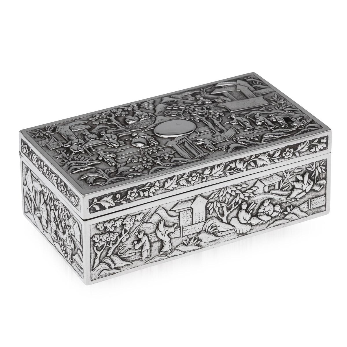 19th Century Chinese Solid Silver Aristocratic Processions Scene Box