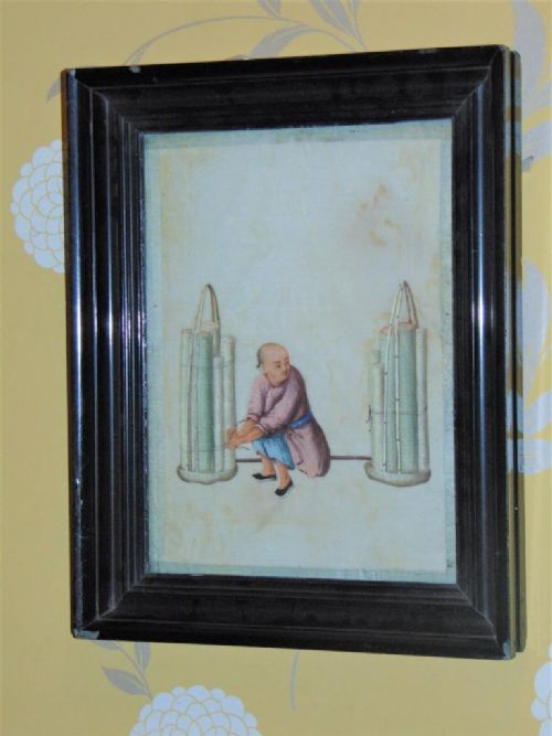 19th Century Chinese Watercolour Painting On Silk Artisan with Scrolls (1 of 1)