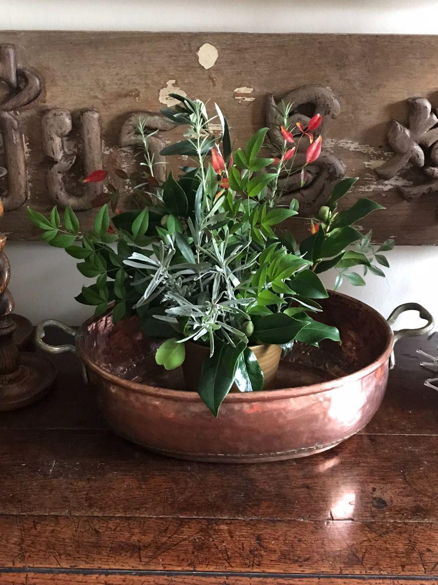 19th Century Copper Pan Planter with Brass Heart Shaped Handles